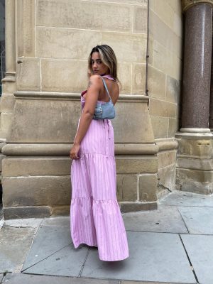 Glamorous Women’s Pink Vertical-Stripe Tiered Maxi-Skirt. Maximize your sense of style with our Pink Vertical-Stripe Tiered Maxi-Skirt! The tiered design adds a playful touch, while the elasticated waistband provides comfort and a flattering fit. Complete the look with the matching top for a that on trend look.