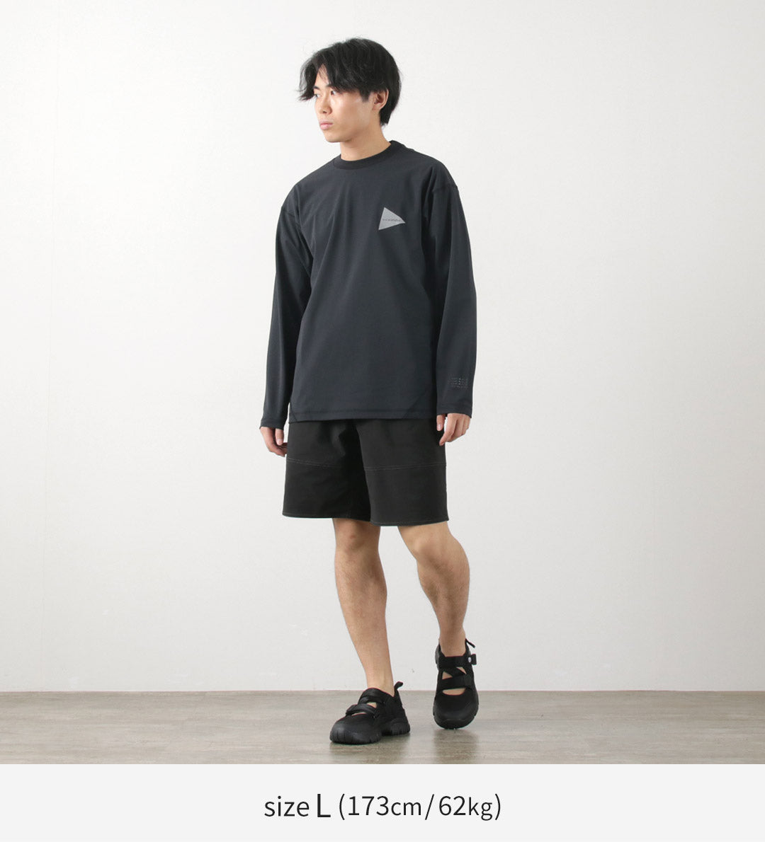 A relaxed silhouette with roominess in the width and shoulders. The pattern work that enhances comfort gives a comfortable fit. Also, with a slightly longer length, it leads to a well-balanced styling when paired with shorts.