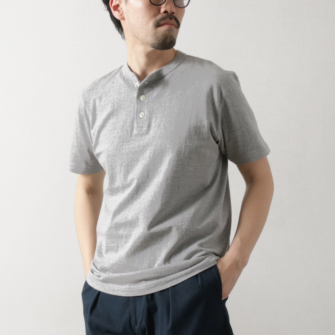 The collar is designed in a classic henley style. The opening is perfectly balanced, neither too wide nor too tight, providing a clean, sharp look around the neckline.