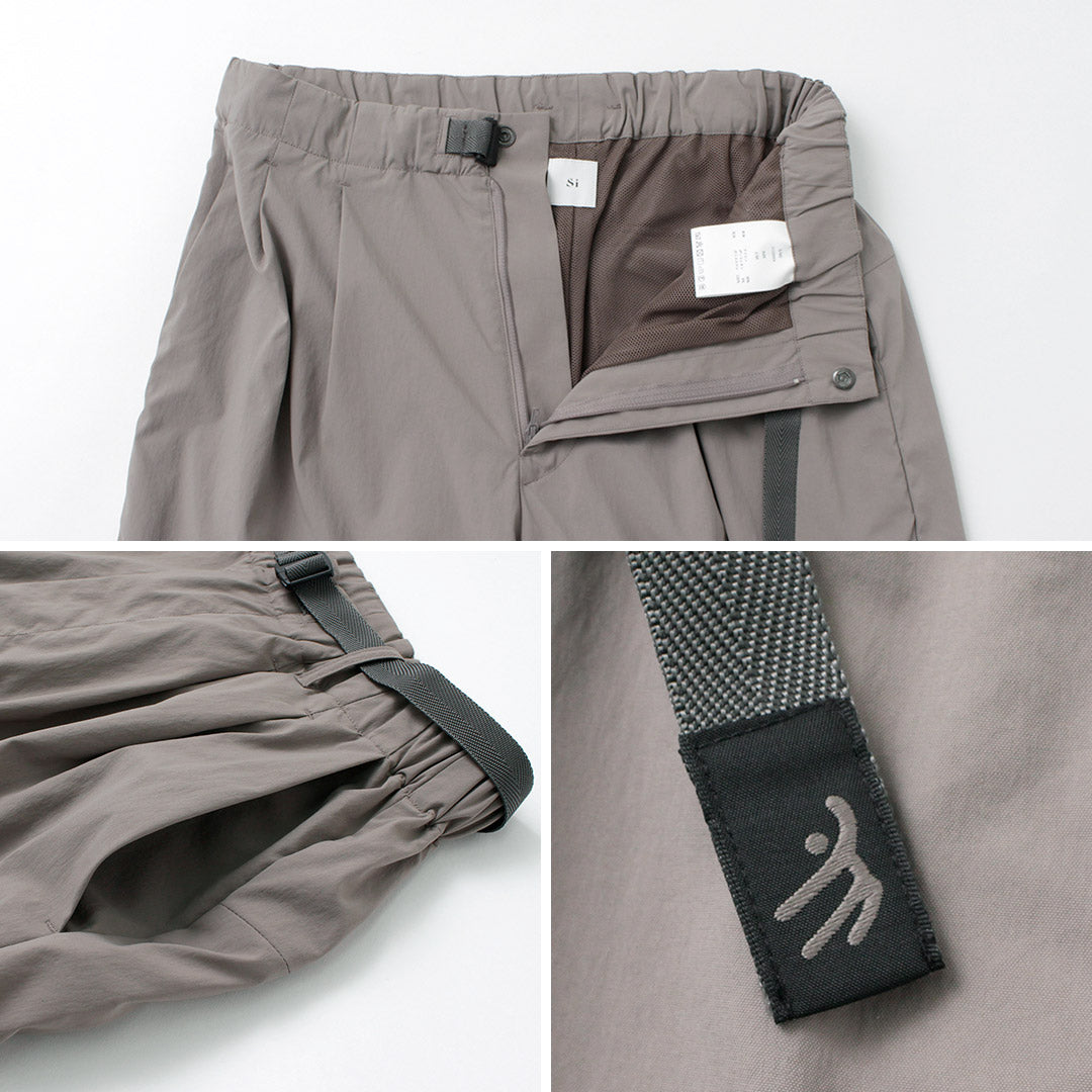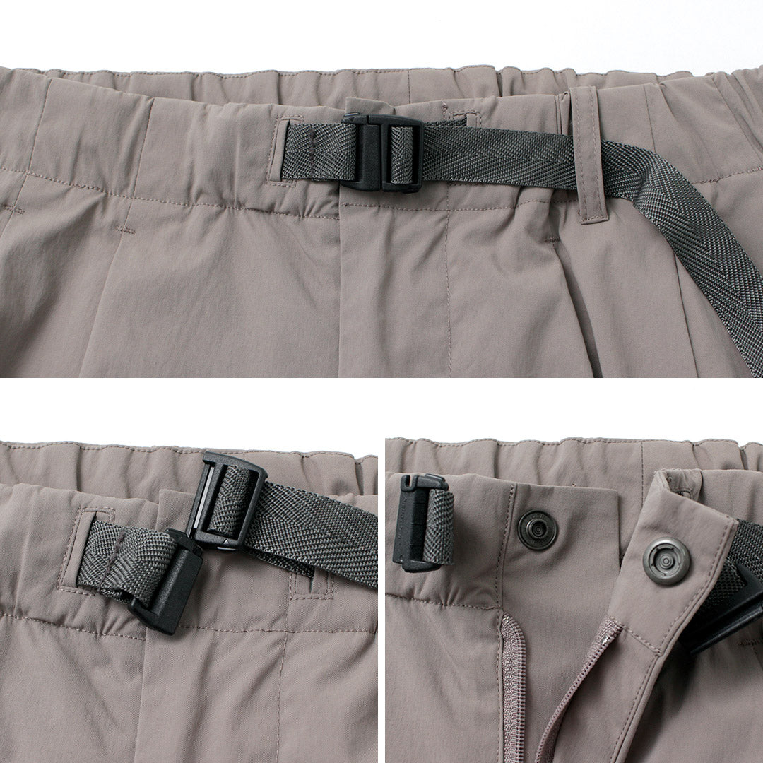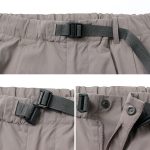 The waist is easy to adjust with elastic and a webbing belt. Sliding buckles are used.