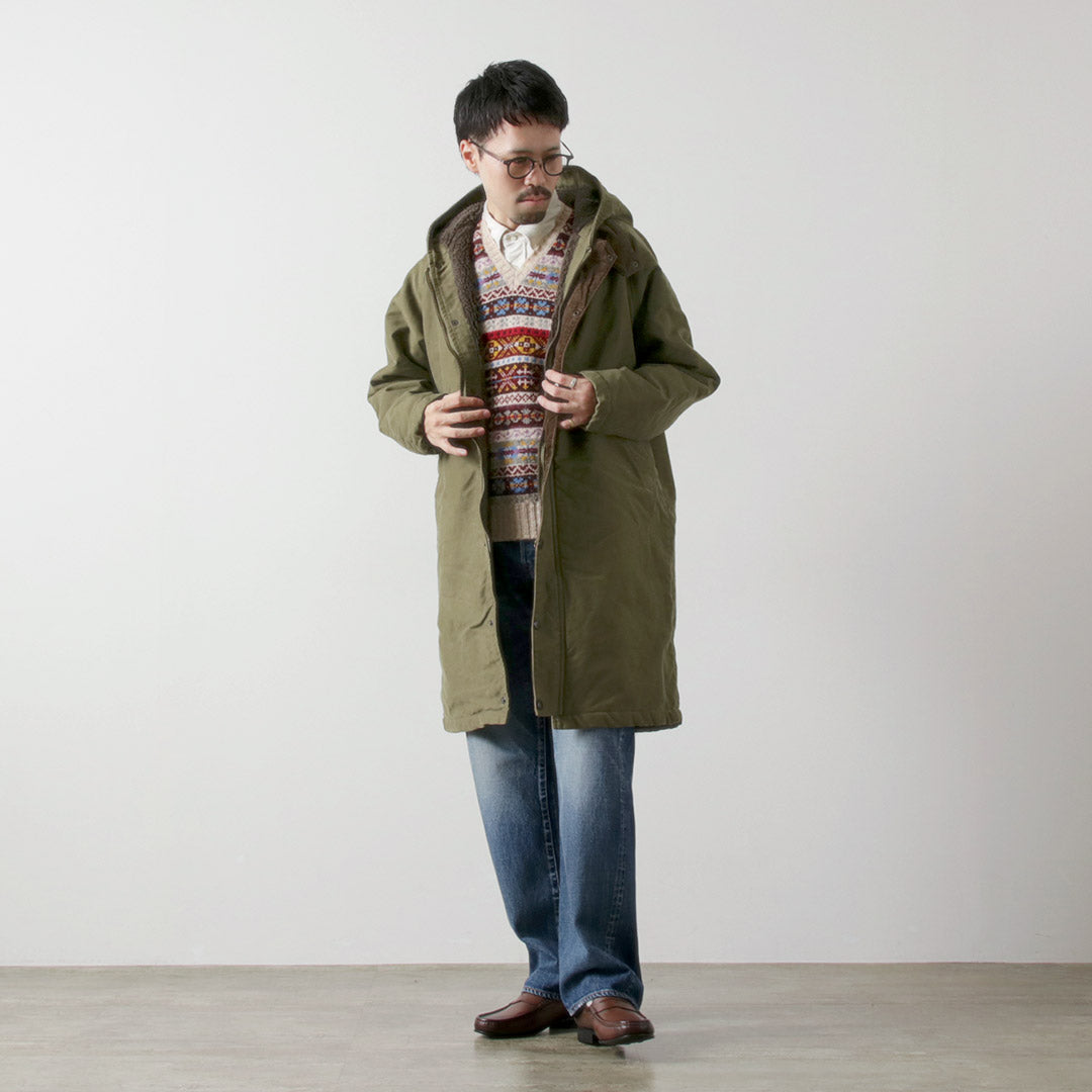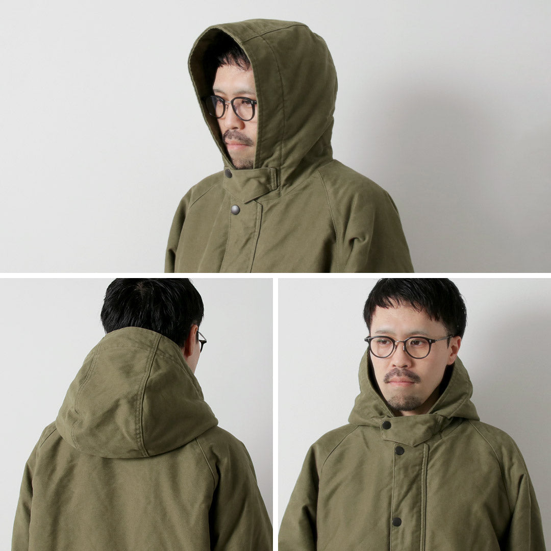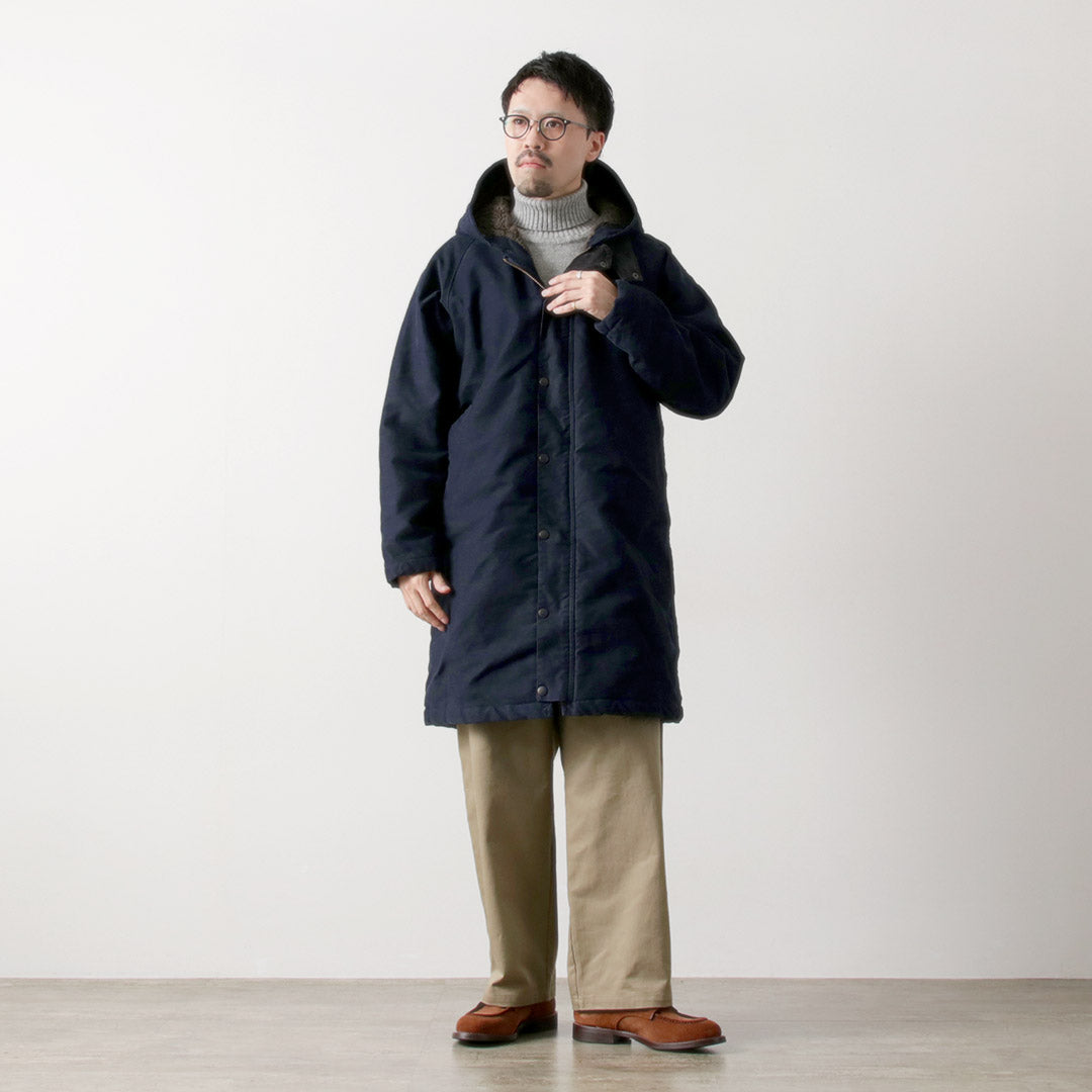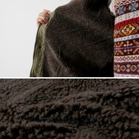 The interior features a luxurious, thick boa lining made from a blend of acrylic, wool, and alpaca. This plush lining, which extends from the sleeves to the hood, envelops the wearer in warmth and ensures excellent heat retention, even when worn with light layers.