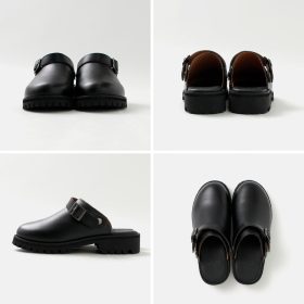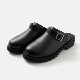 These two-way leather sandals are based on the motif of “engineer boots,” which originated in factory work boots.