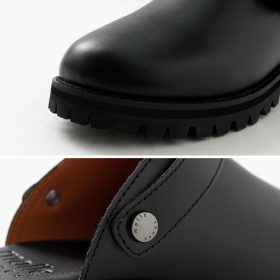 Engineer boots, which originated from work boots, do away with shoelaces to prevent things from getting caught while working, and the size can be adjusted with a buckle.