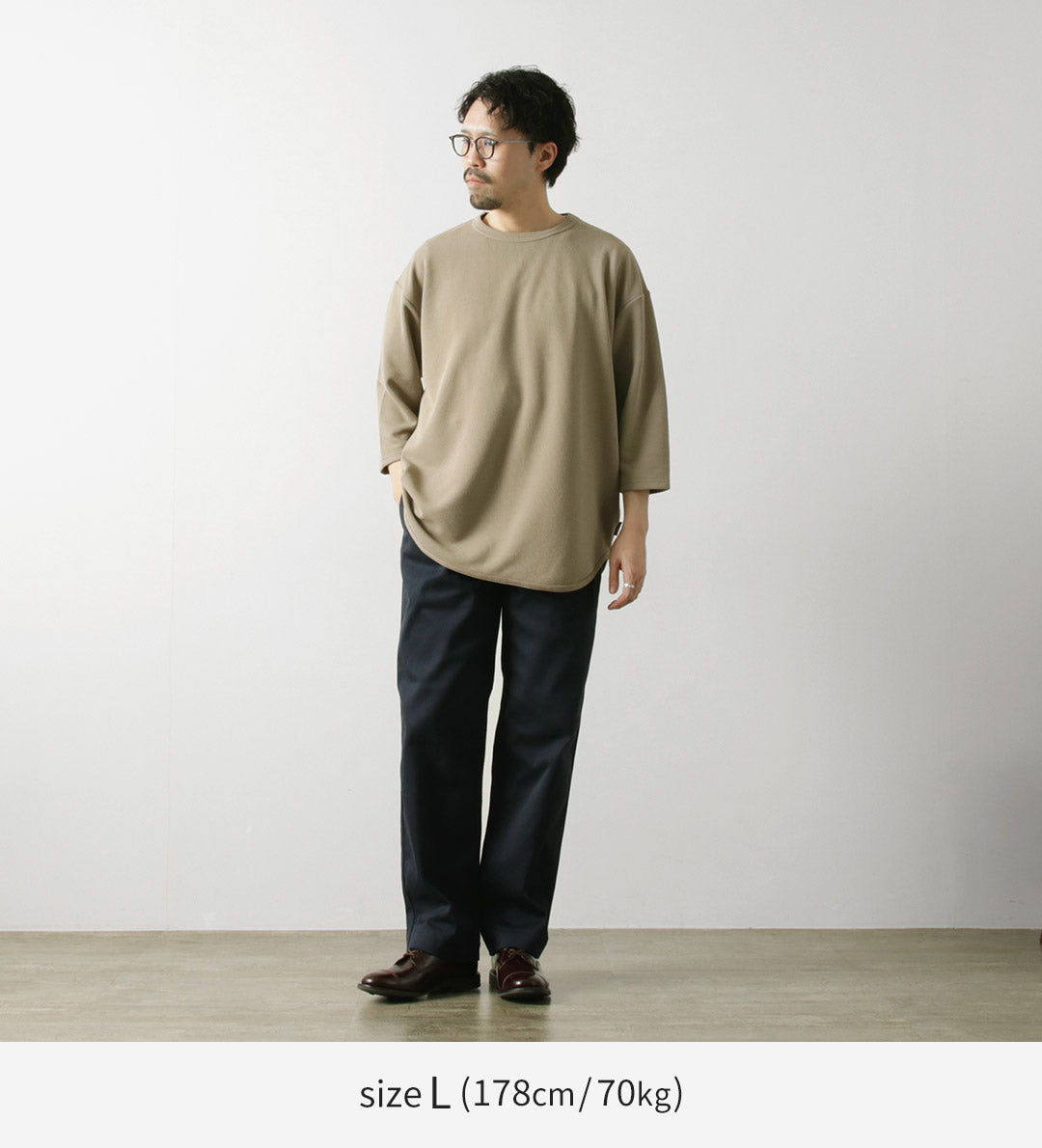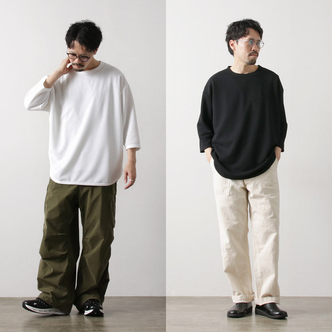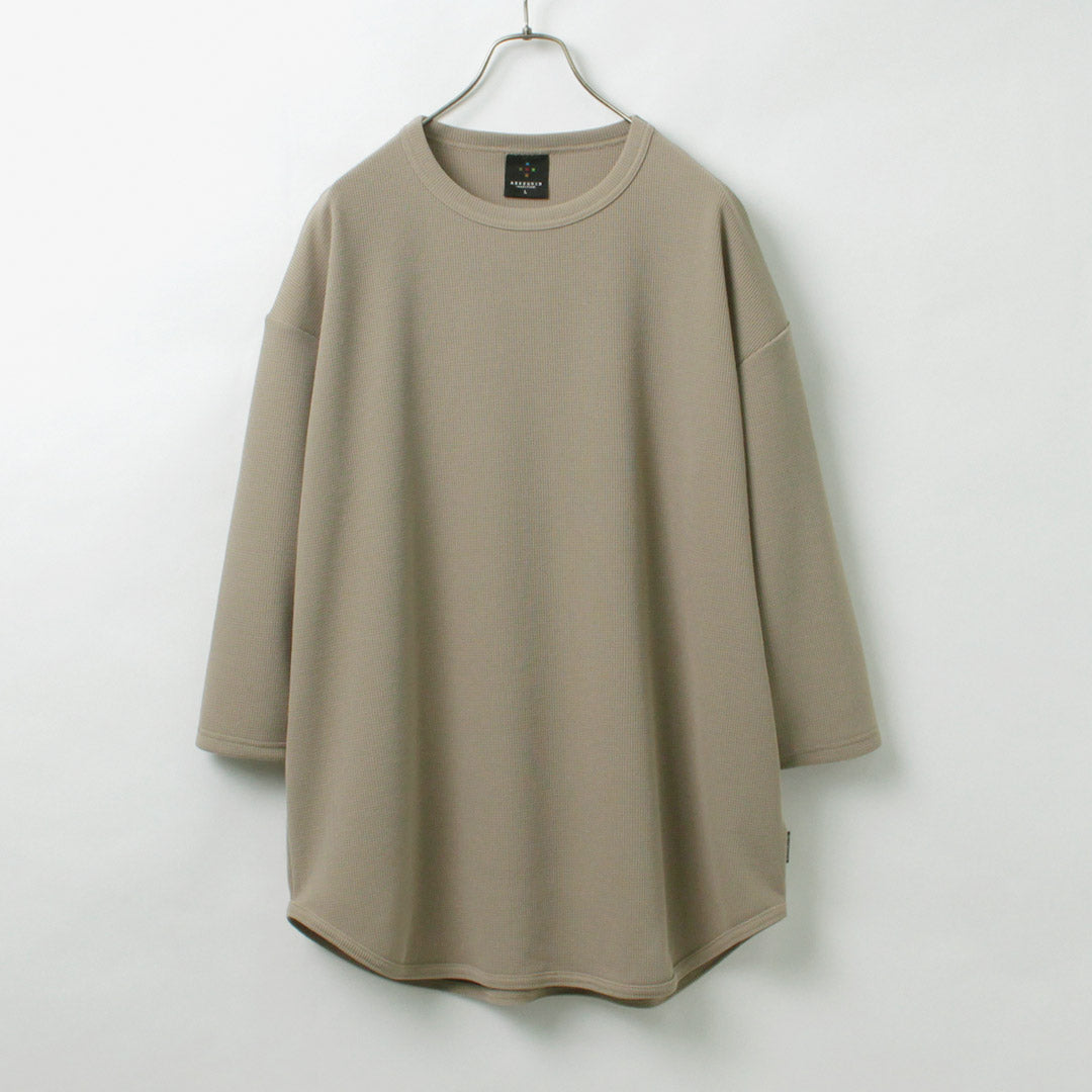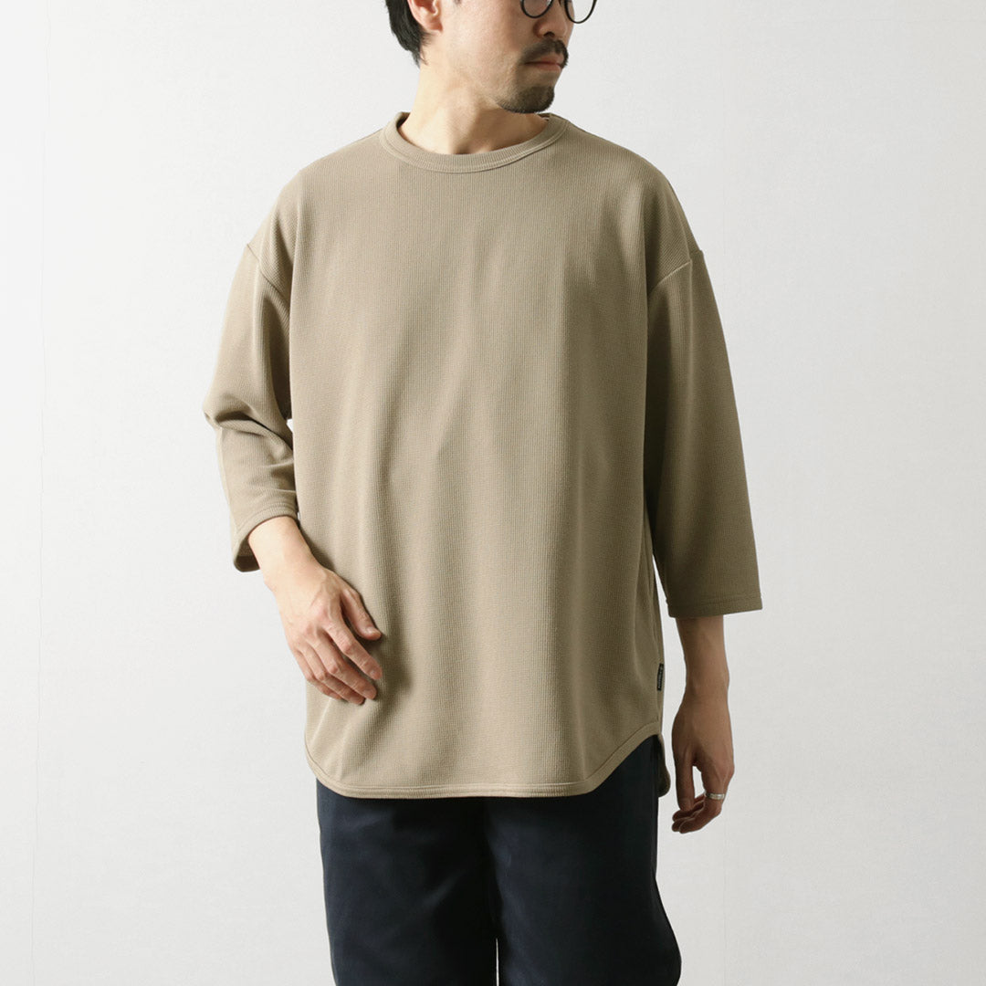 Featuring a classic crew neck, this design maintains a clean and versatile aesthetic. The three-quarter length sleeves offer the perfect balance for transitional seasons and provide an excellent option for those who prefer more coverage than short sleeves.