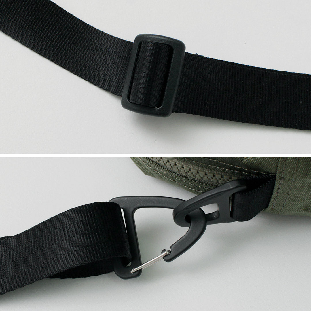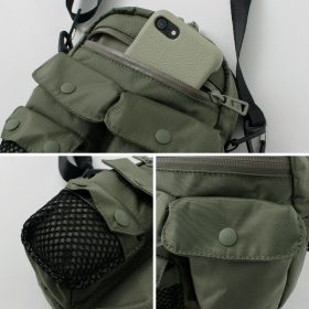 The shoulder strap is adjustable in length and detachable. It can be worn diagonally across the body, over the shoulder, hung from the neck like a neck strap, or even detached to use as a pouch. It’s versatile for various situations.