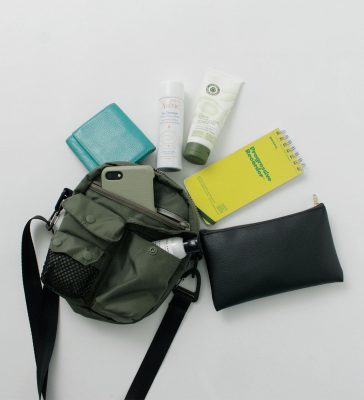 The main pocket has a solid gusset, providing more storage capacity than it appears. You can comfortably fit a smartphone, wallet, pouch, and more. Additionally, there’s a zippered pocket on the back.