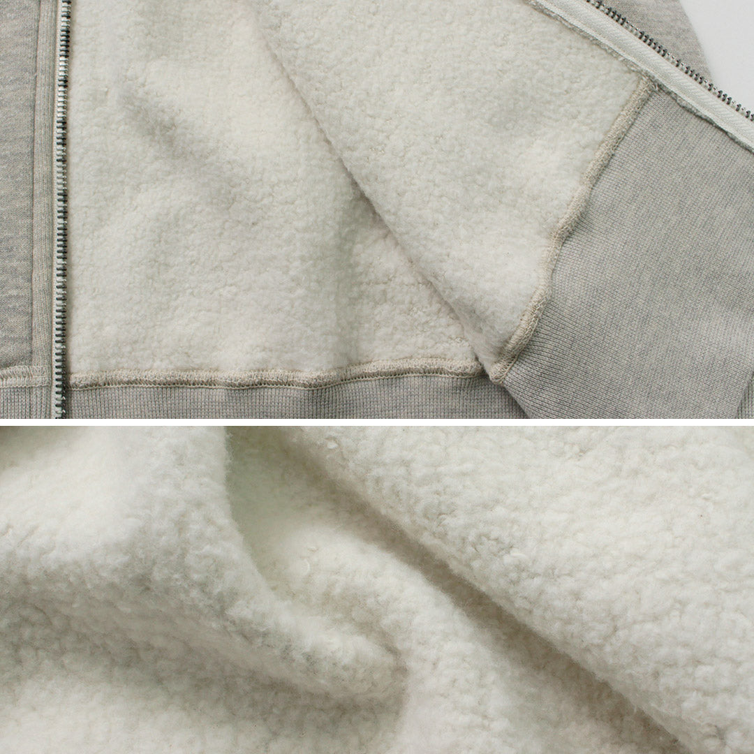 Furthermore, the reverse side uses a traditional technique called “tube brushing,” where a cylindrical body is brushed while keeping its shape intact using rare machinery. This creates a wearing experience that gently envelops the body.