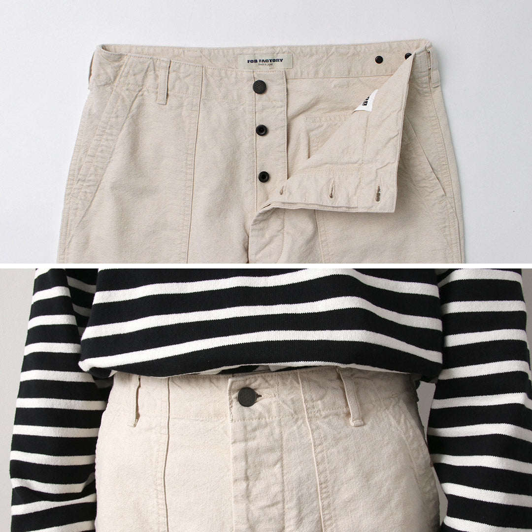 Inspired by vintage clothing, workwear, military, and denim, FOB Factory is a brand based in Kojima, Kurashiki, Okayama, one of Japan’s leading production hubs. With all processes completed domestically, the brand strives to create clothing that customers will appreciate even three years after purchase.