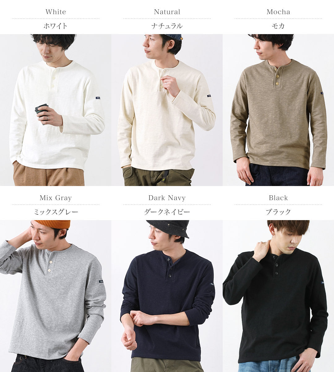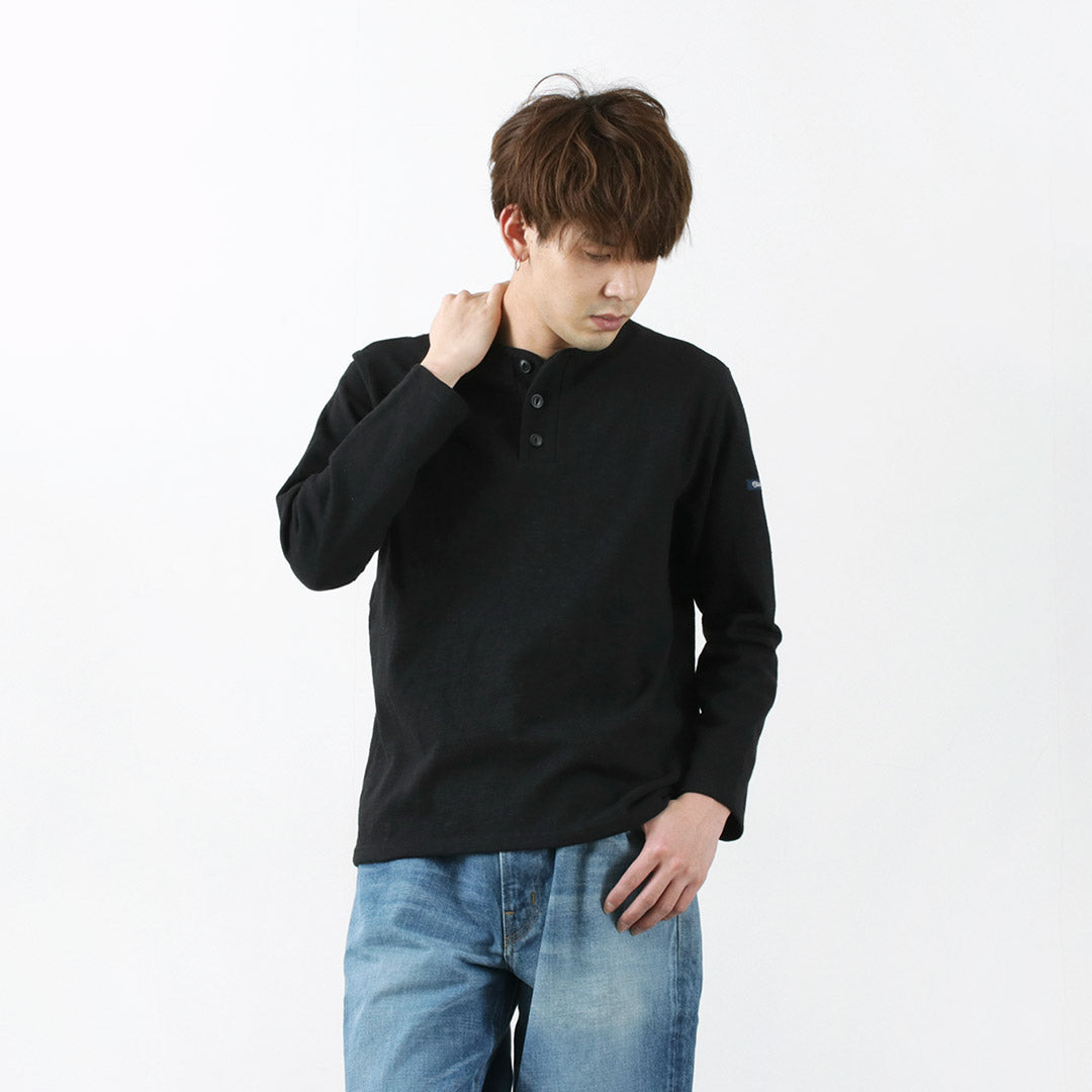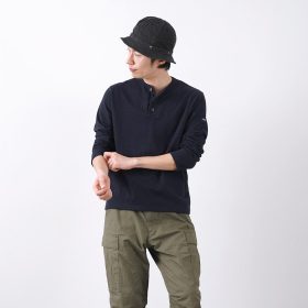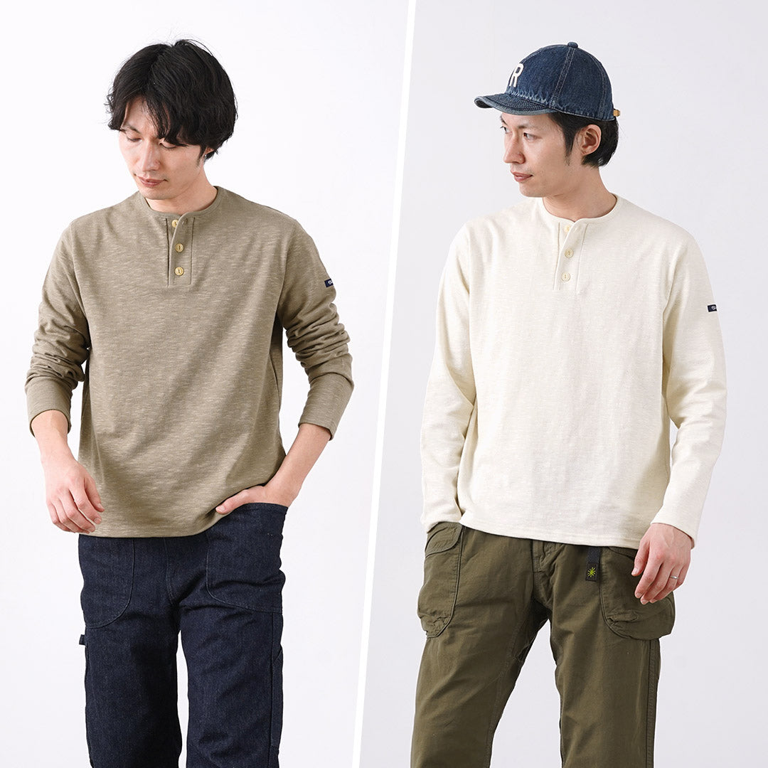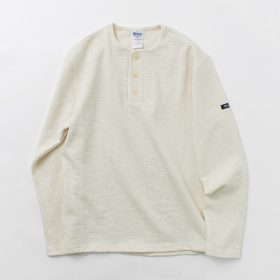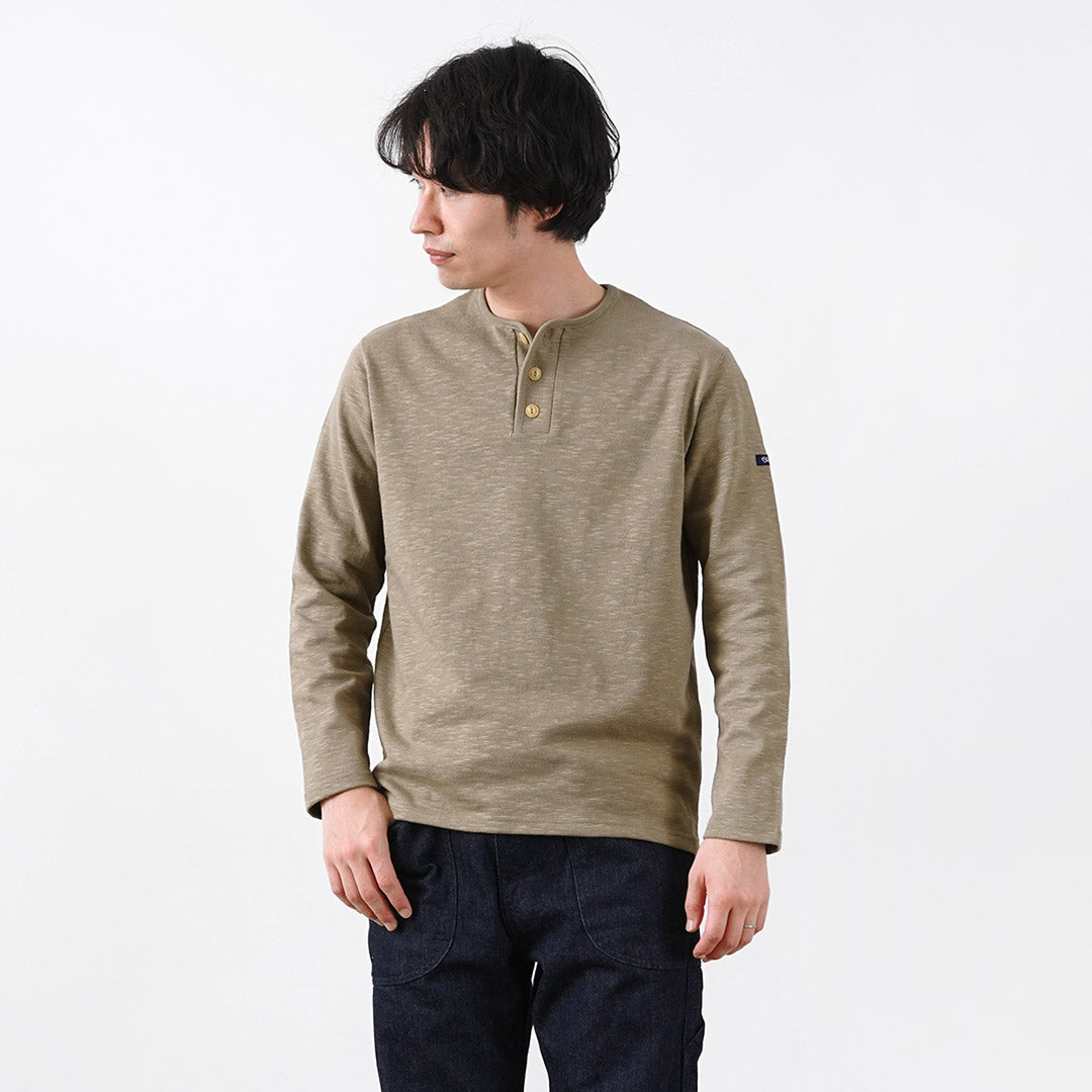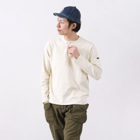 The henley neck design allows various nuances to be expressed by opening and closing the buttons.