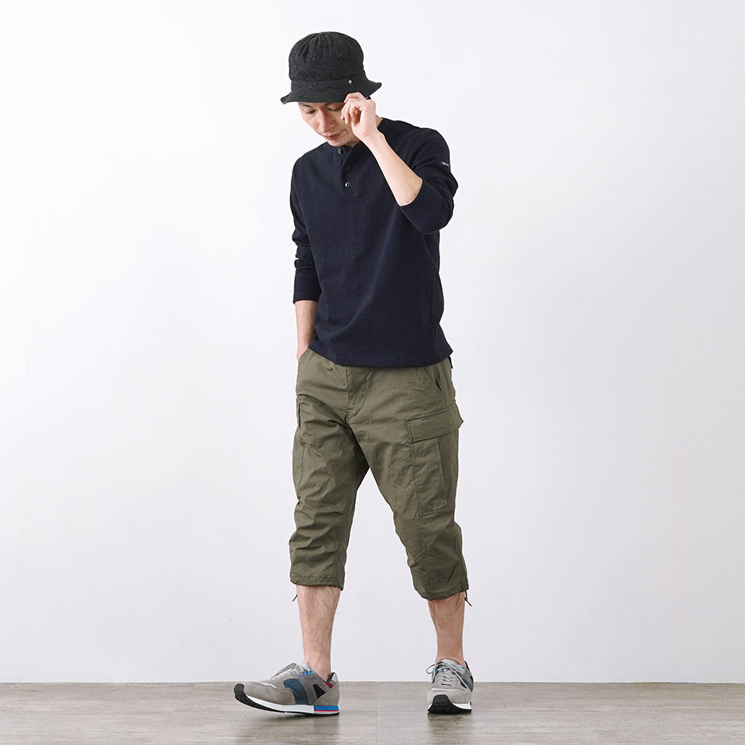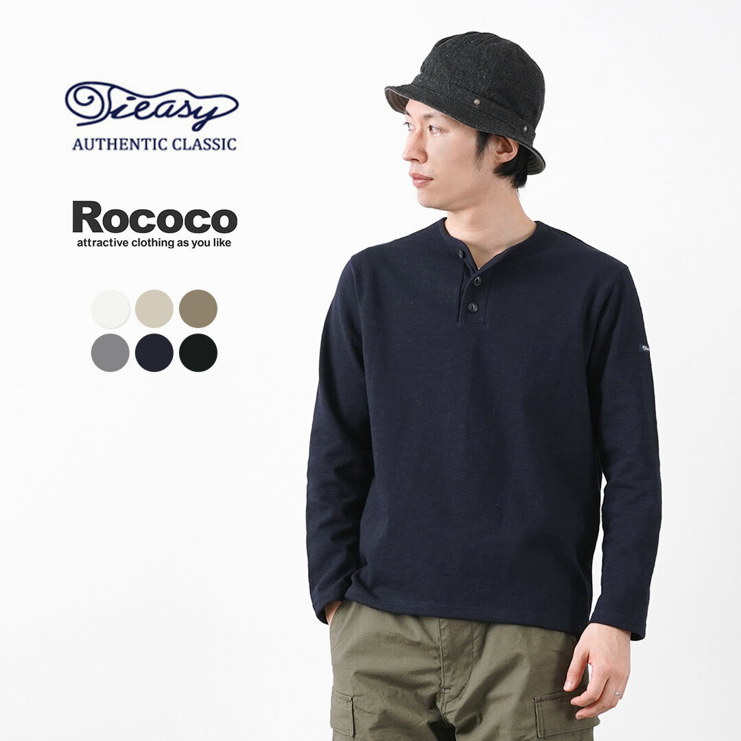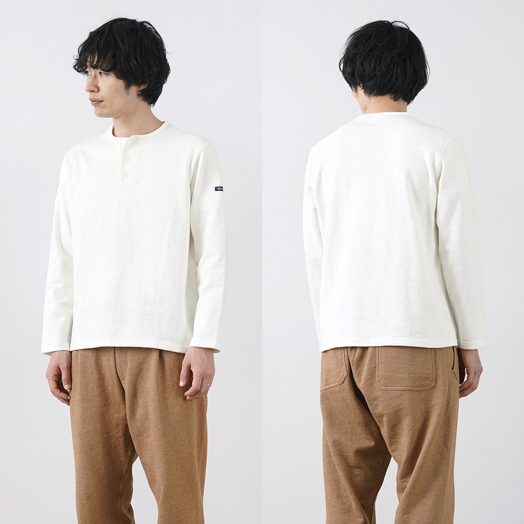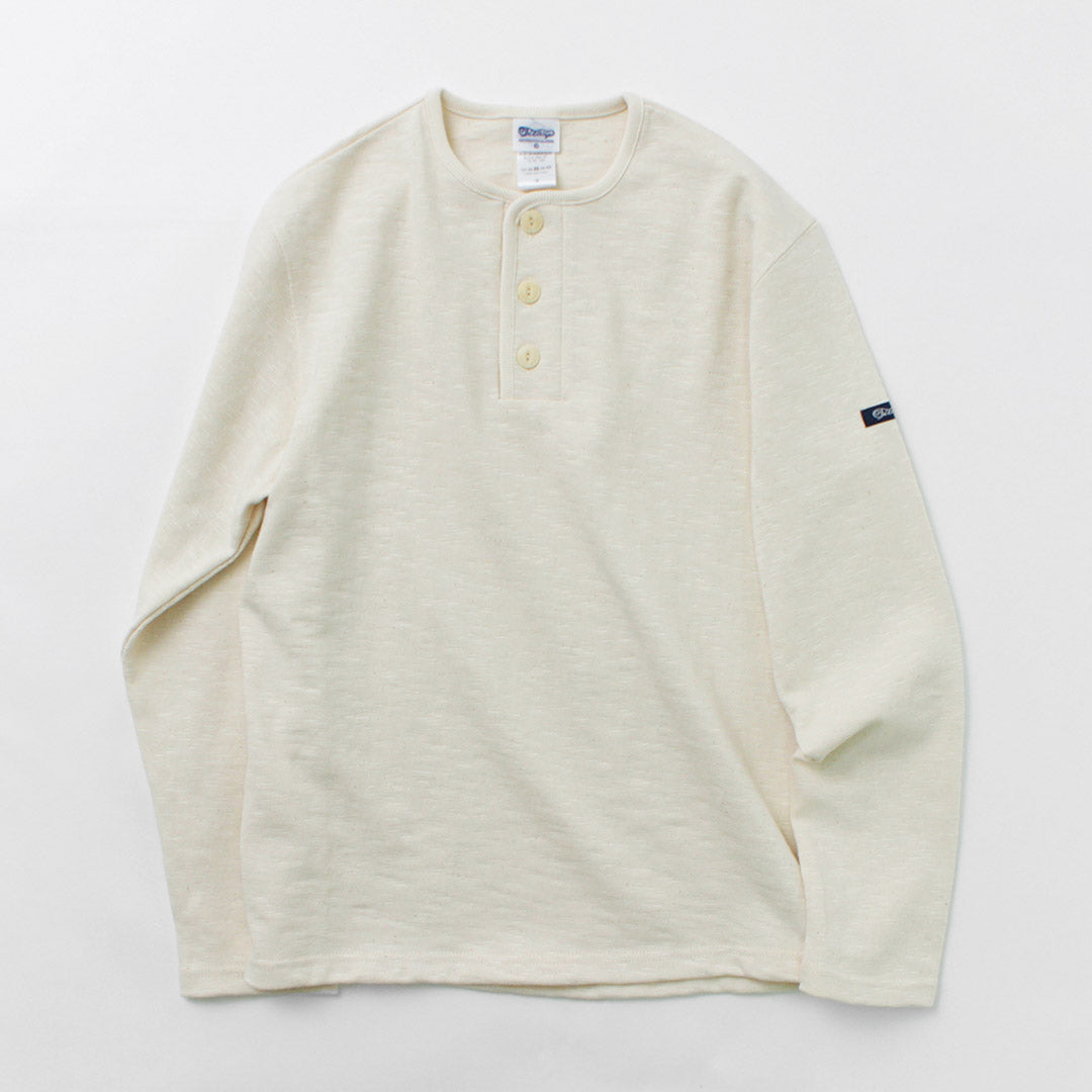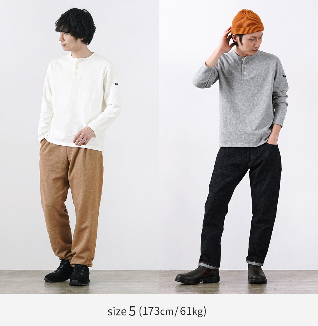The henley neck design allows various nuances to be expressed by opening and closing the buttons.
