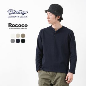 This is a special order model of our “Boat Neck Basque Shirt” knitted on an old style loom from the Taisho Era, and finished with a henley neck for ROCOCO.