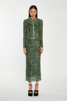 Glamorous Womens Green-Black Animal Mesh Skinny Fit -Shirt. This stylish Mesh Skinny Fit Shirt and Matching Skirt combo will have you looking fierce and fashion-forward! With its classic slim fit design and breathable mesh fabric, youll be looking fierce and fashionable all day long. Looks great paired with jeans, or with the matching skirt!