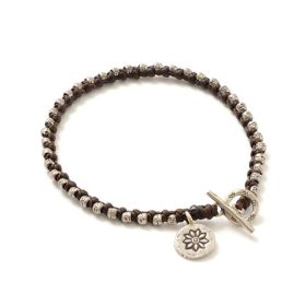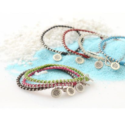The combination of waxed cord and Karen silver makes this a perfect summer accessory. The combination of waxed cord and Karen silver will add a subtle touch of colour to your wrist. The wobbling charms add to the charm. It is water resistant and can be left on for summer activities. It’s the perfect accessory to complete your summer look.