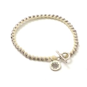 Approximately 3mm beads, charms and clasps are made of “Karen Silver”. It is decorated with the Padua logo pattern.