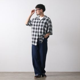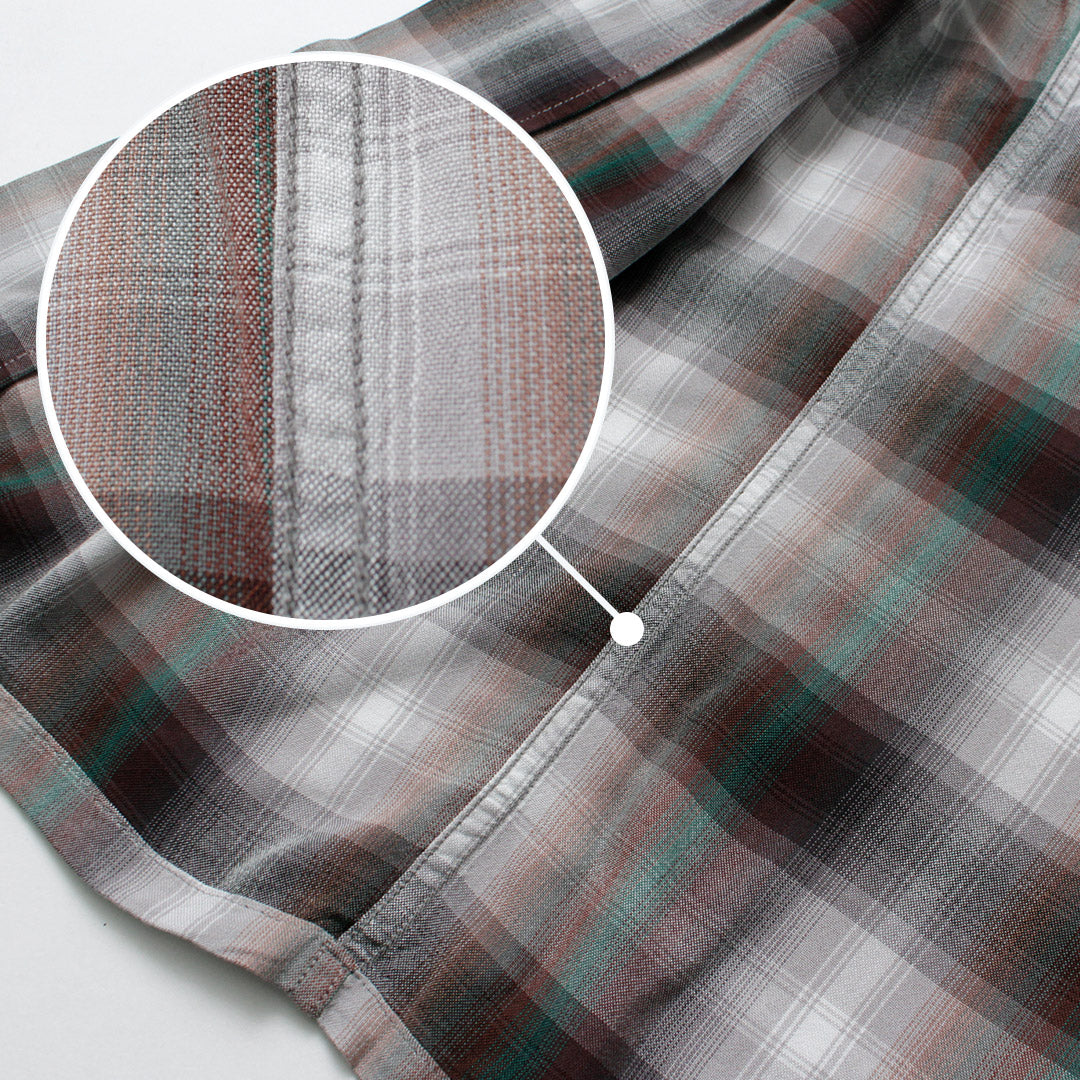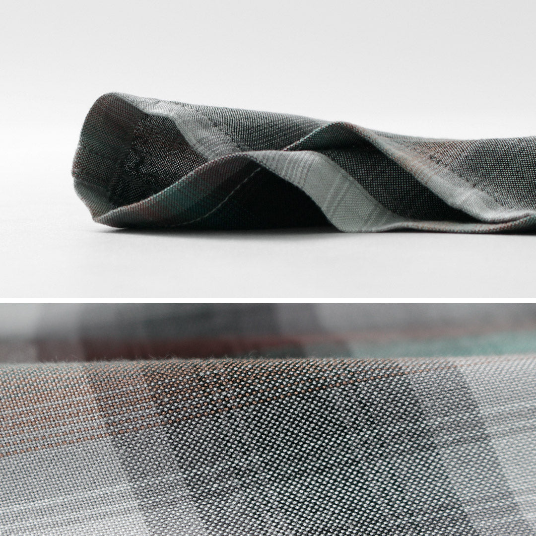 Made from rayon fabric woven in Mitsuke City, Niigata—an area known for its yarn-dyed textiles. The fine yarns create delicate shading that gives the fabric a natural, cotton-like appearance.