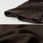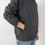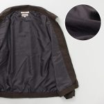 Pockets are placed on both sides for easy insertion. The hem and cuffs have elastic shirring to prevent wind from entering, and are classically finished without ribbing.