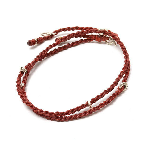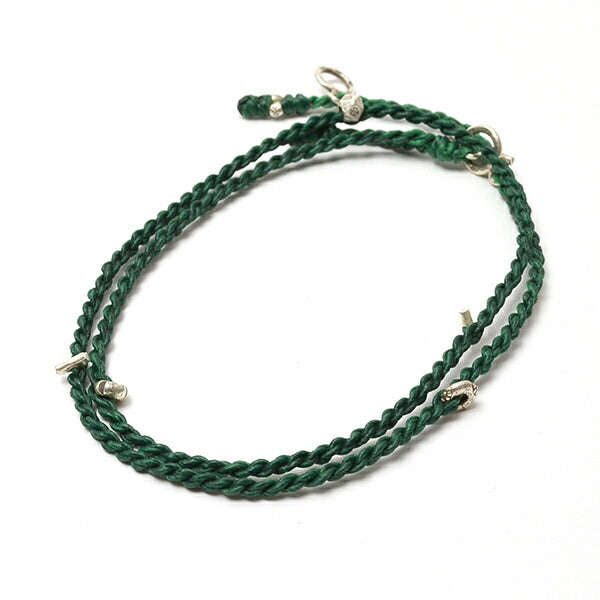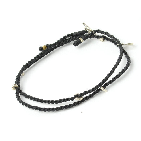 Strong and water resistant to be left on all day. A combination of waxed cord and warm, unique and artistic Karen silver. It can be worn in three different ways. As a choker necklace, bracelet or anklet. The use of different types of Karen silver gives the piece a different look depending on the angle of view.