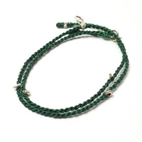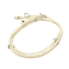The two rings can be adjusted in millimetres by loosening the twisted wax cord. The two rings can be adjusted by a few millimetres. Once you have found the “just right” fit, it is very easy to put on and take off. Once you have found the “just right” size, it is easy to put on and take off. The simplicity of these bracelets makes them ideal for stacking or combining with silver jewellery.
