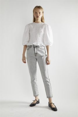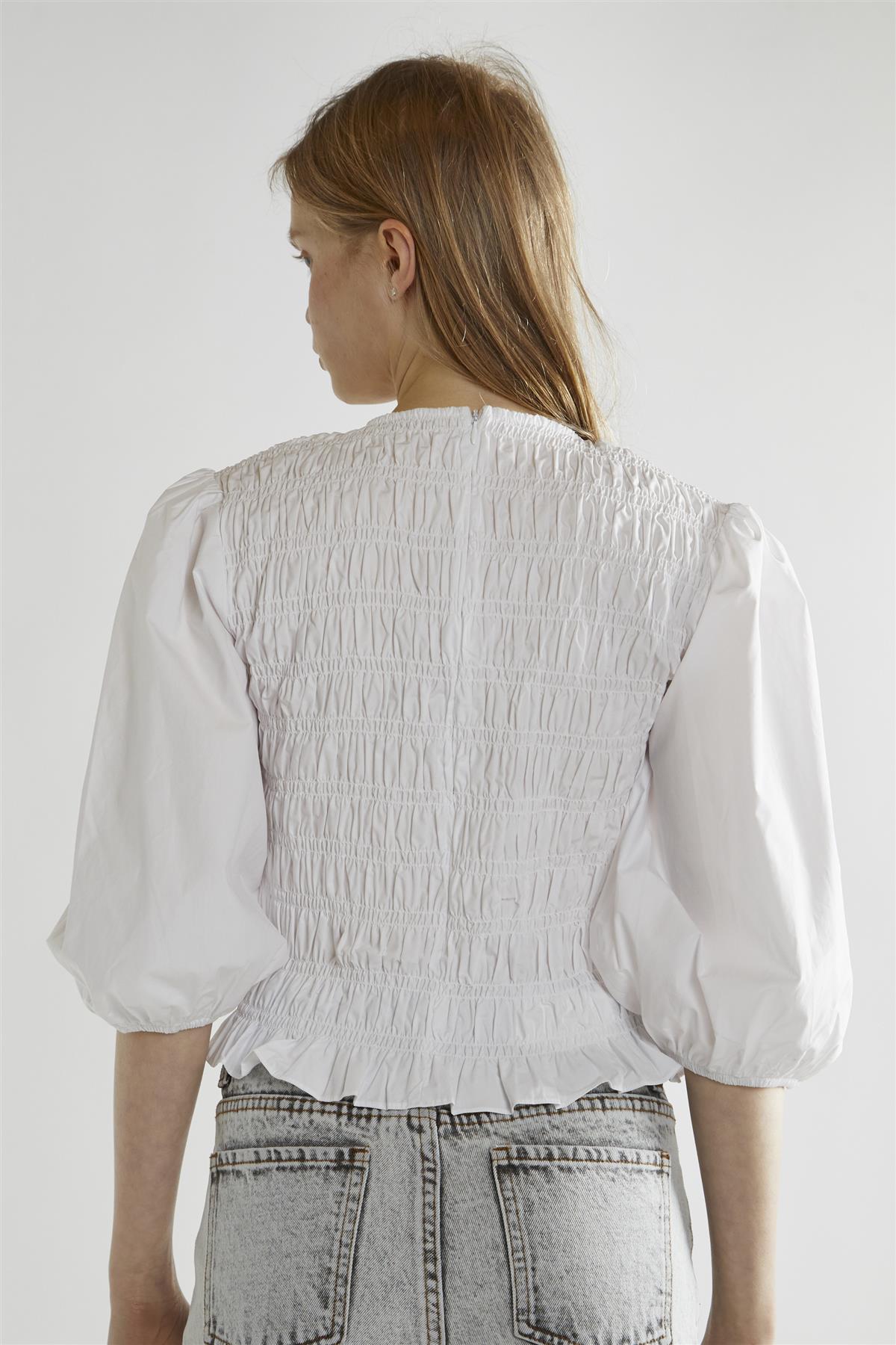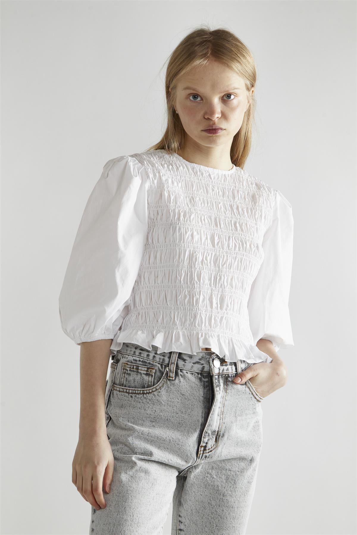 Glamorous Women’s White Shirred Top. Our White Shirred Top is a delightful blend of comfort and style. The shirred texture adds a unique, laid-back vibe to this versatile piece, making it perfect for both casual outings and relaxed office days. The puff sleeves bring a touch of whimsy, while the 3/4 length keeps things practical and seasonally flexible. A classic crew neck provides a timeless look, complemented by charming frill details that add a feminine flair. We’ve included a concealed zip fastening at the back for a smooth, polished finish. This top is a breeze to style – pair it with your favourite jeans for an effortless everyday look, or tuck it into a skirt for a more put-together ensemble. The crisp white colour makes it easy to accessorize with colourful jewellery or scarves. It’s the kind of top that feels special without being fussy, perfect for those who appreciate a bit of texture and detail in their wardrobe staples. The shirred fabrication is not only stylish but also forgiving, making it a great choice for travel or busy days when you want to look good without much effort.