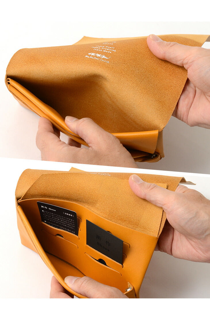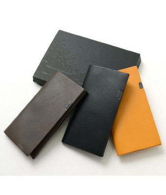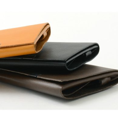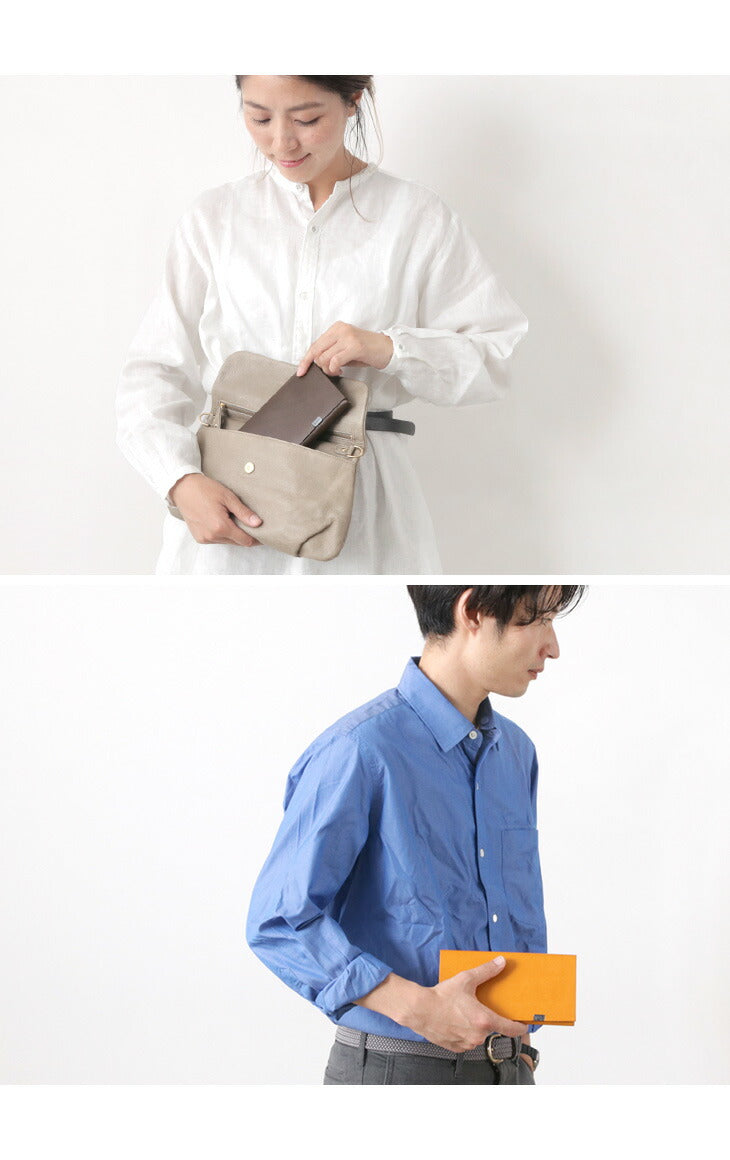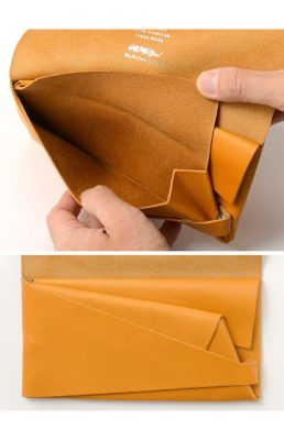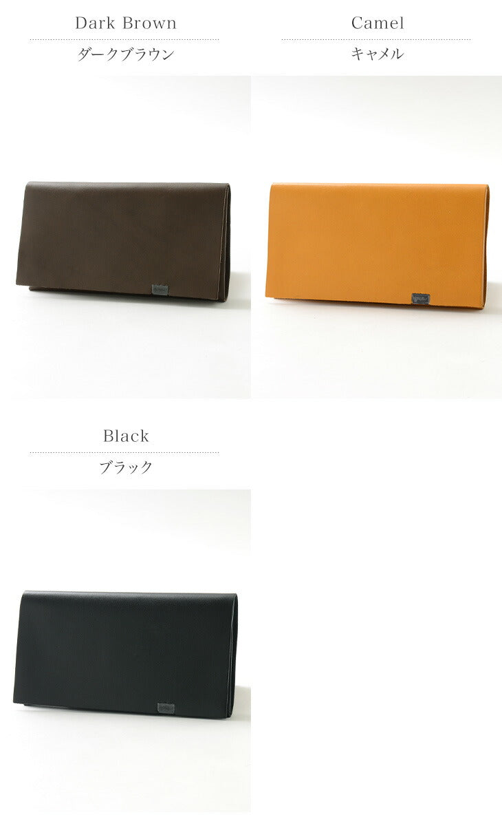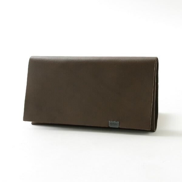 The minimalist design of this long wallet, formed by folding a single piece of leather without sewing and fastening it at a single point, gives a smart and mature look to the hand.