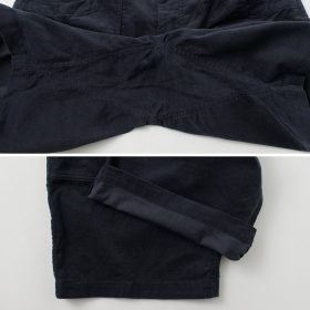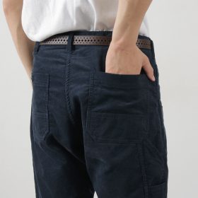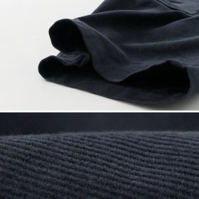 Thin-wale corduroy fabric is used, making it suitable for summer wear. Unlike typical corduroy, it has a different thickness and texture, offering excellent breathability even in midsummer.