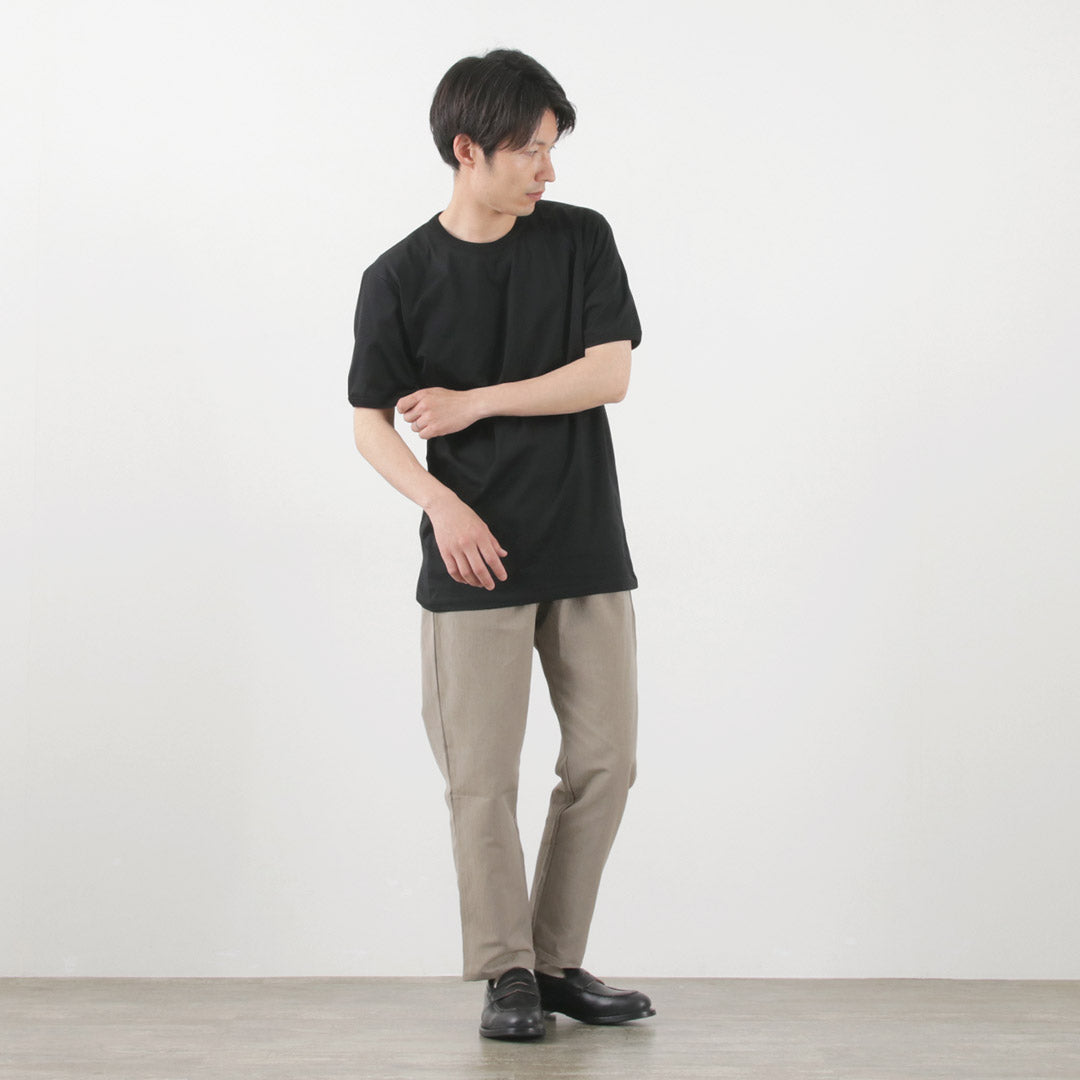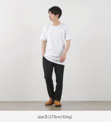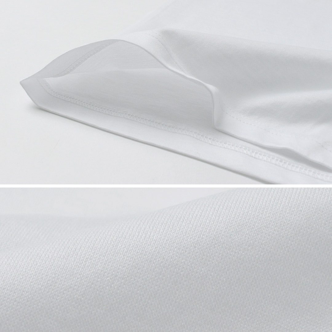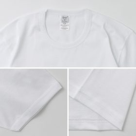The neck and sleeves are sturdily sewn with binding. The body part is a round-body specification with no seams on both sides, which realizes a comfortable fit without any loose seams. Only size 3 is side-stitched.