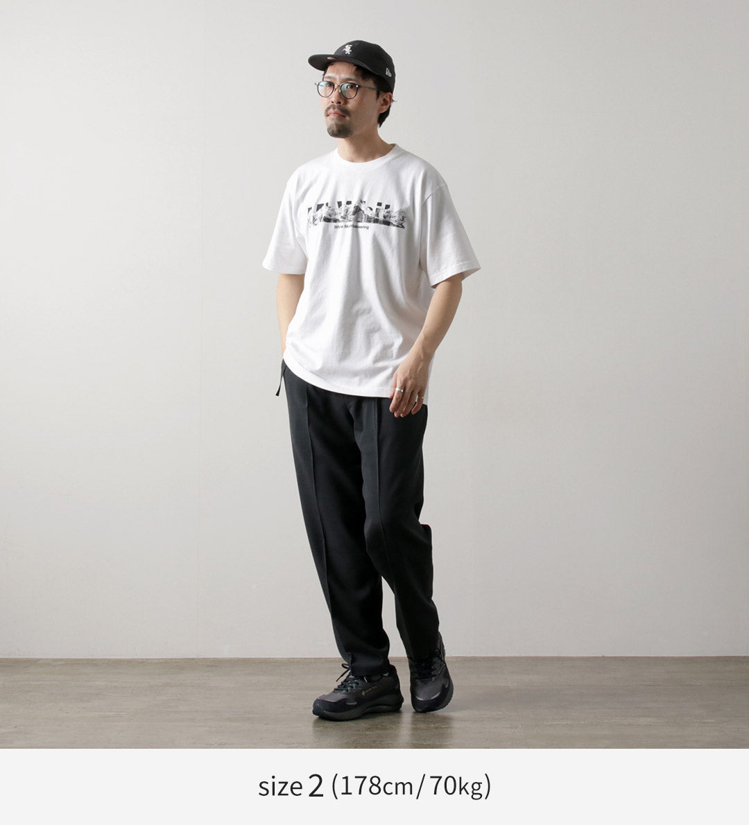 The front features White Mountaineering’s signature monochrome graphic and logo print. Simple yet impactful, this design serves as a versatile statement piece in any outfit.