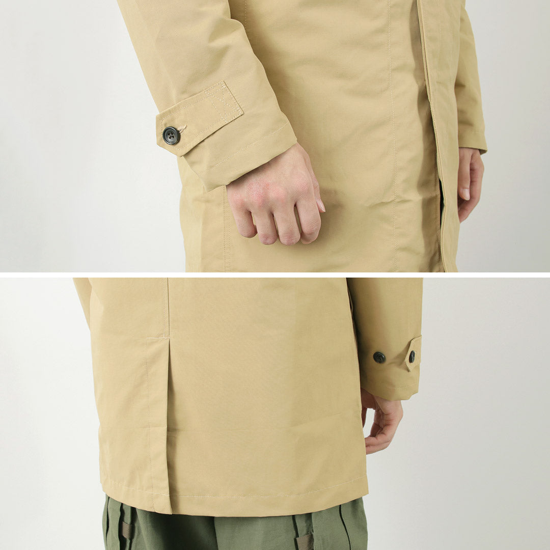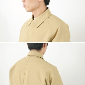While it looks like a traditional soutien collar type half coat, it has a functional outdoor design scattered throughout. It is a coat that incorporates functionality and comfort cultivated over many years in the outdoor scene into a simple design that can be worn on the street.